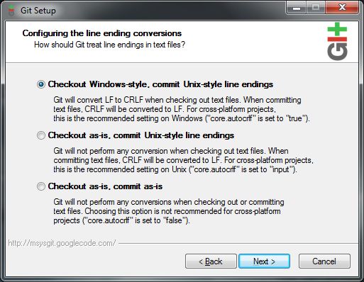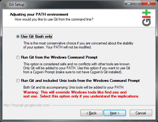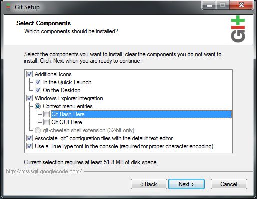 These are the installation options I used to install Git-1.7.0.2-preview20100309.exe on Windows
